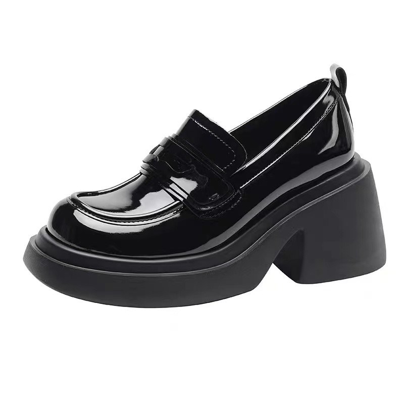 Fashion Sepatu Flat Loafer Hitam Dengan Tinggi Tumit 4cm