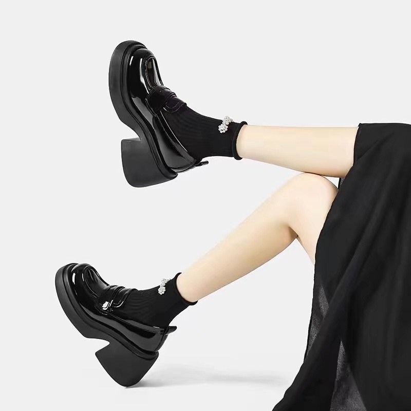 Fashion Sepatu Flat Loafer Hitam Dengan Tinggi Tumit 4cm 0 GORANG (TIKIT) SELF